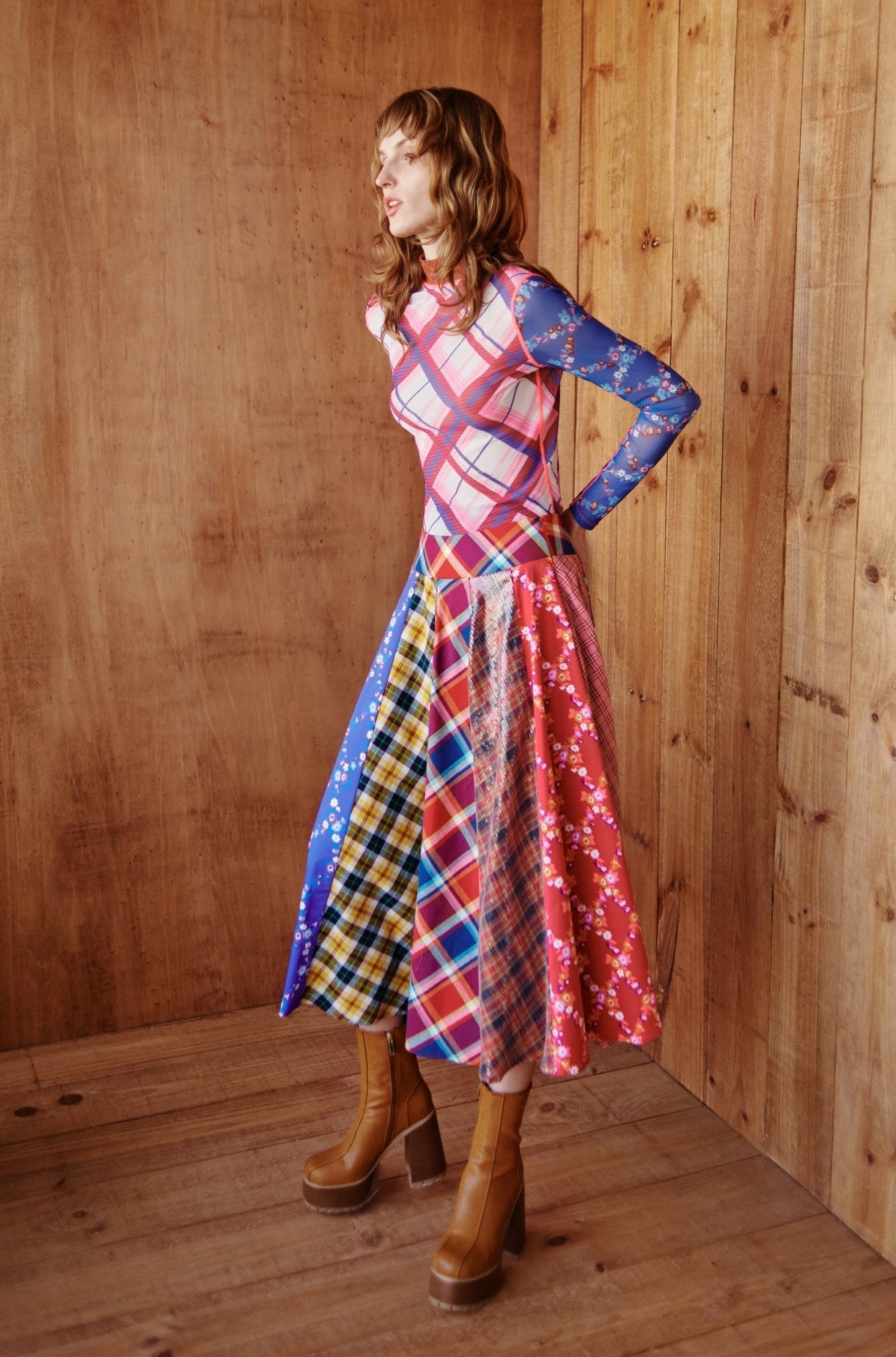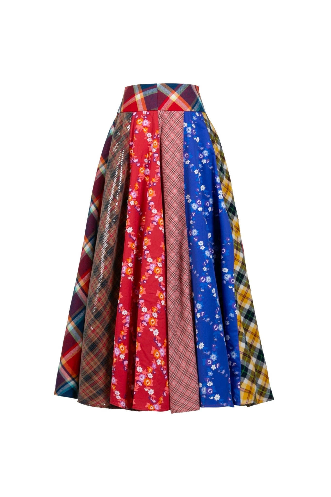 Twirl into style with our Aliso Skirt, a stunning blend of colors and patterns that celebrate individuality. Featuring a mix of plaid and floral prints, the skirt will become a must have. The skirt is full of movement, making it perfect for any occasion. Whether you're heading to a festival or a casual day out, this skirt pairs beautifully with a simple top or a matching patchwork piece for a bold - embrace the art of mix-and-match!
