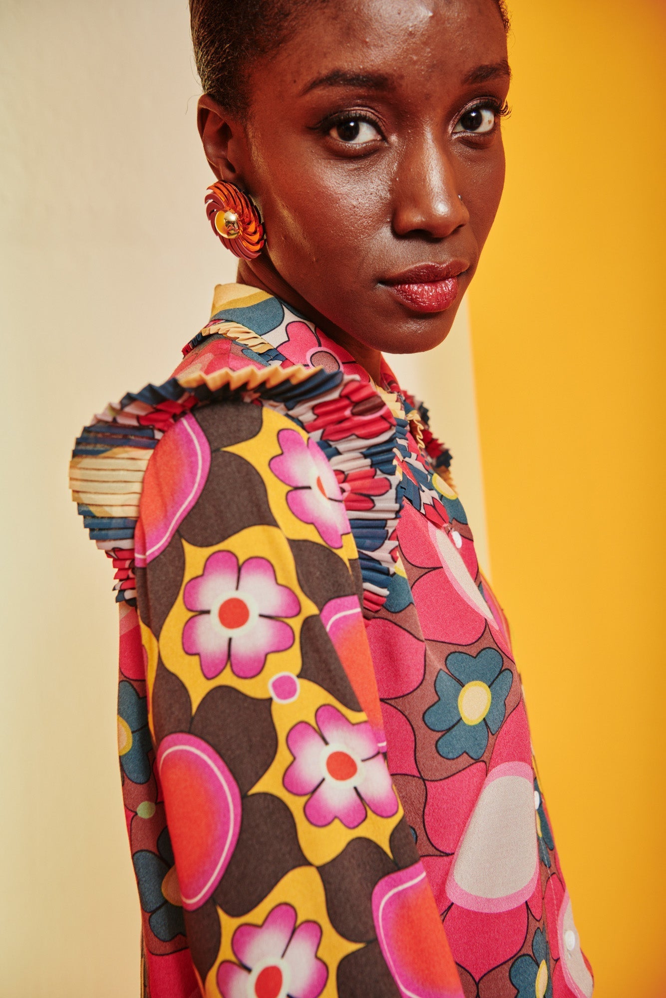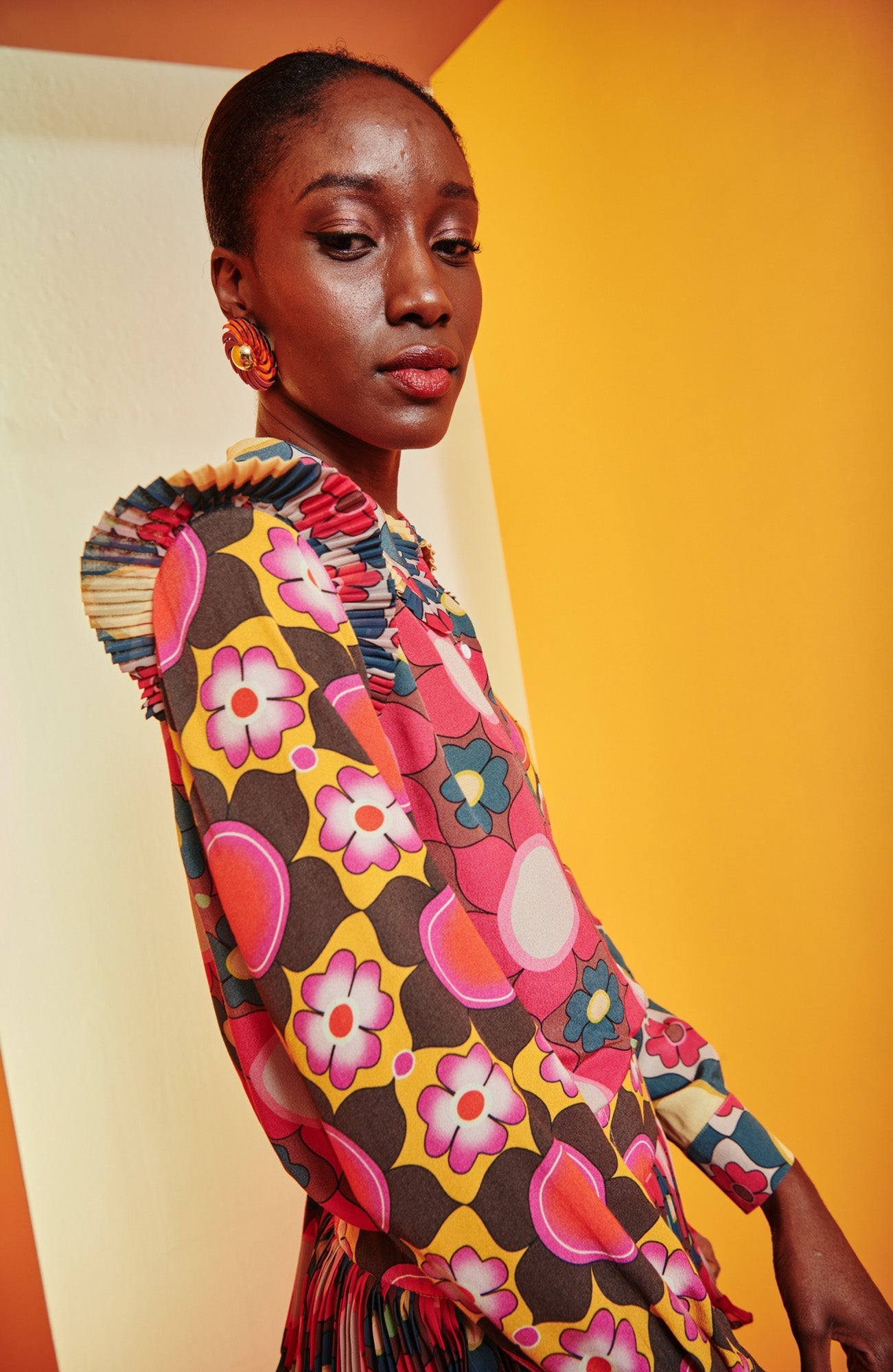 Long sleeve blouse in one of our beautiful mix-and-match seasonal prints. Front buttons and delicate ruffle details in the sleeve. Perfect to combine with our Tifon skirt and bring some color to the season.