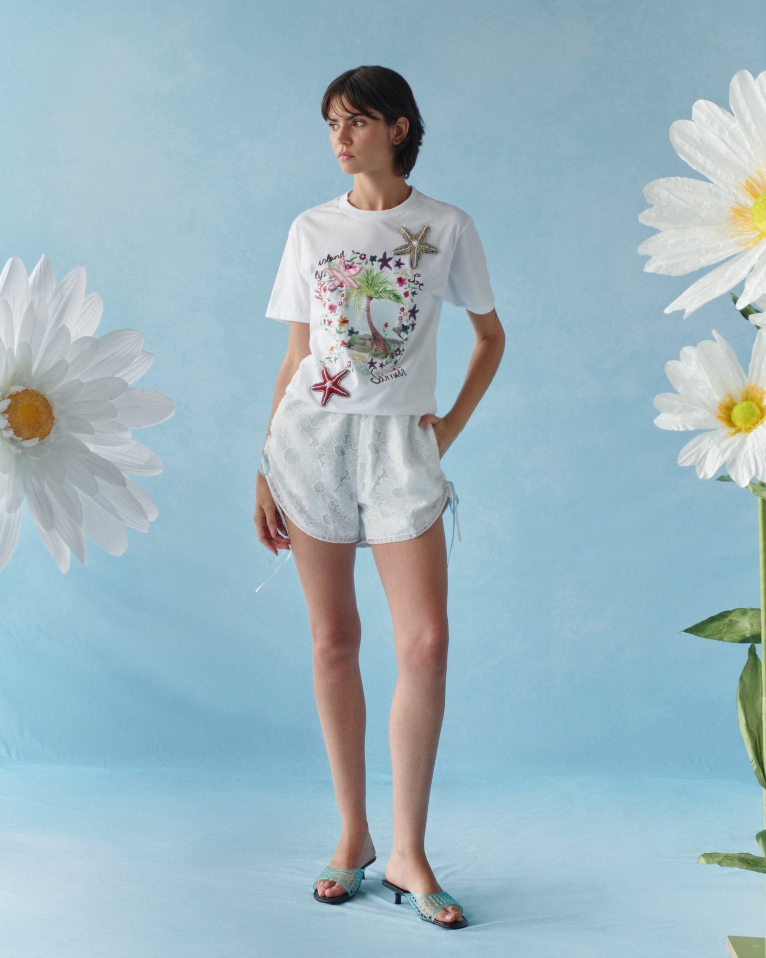 Relaxed and refined lace mini shorts designed for effortless summer styling.